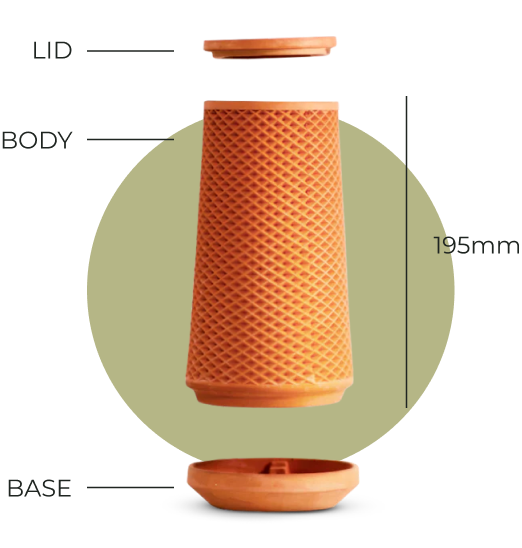 The tevaplanter is made from specially engineered ceramic material. This material is porous, allowing water to seep through and provide consistent moisture to the plant’s roots growing on the outside. The ceramic is durable, non-toxic, and designed to support plant growth without soil. Both the material and shape of the tevaplanter vessel were engineered to create the ideal home for plants.