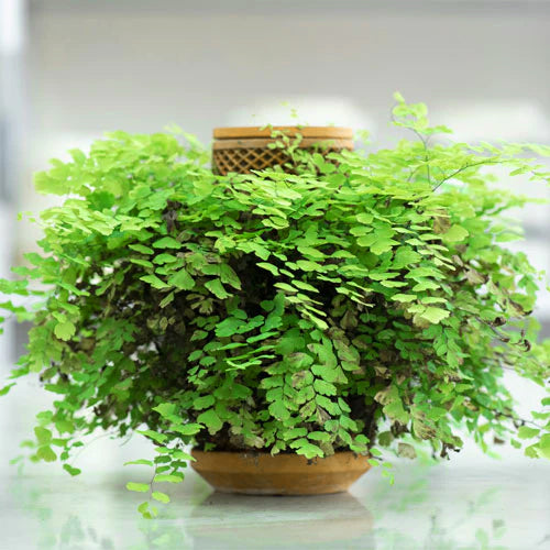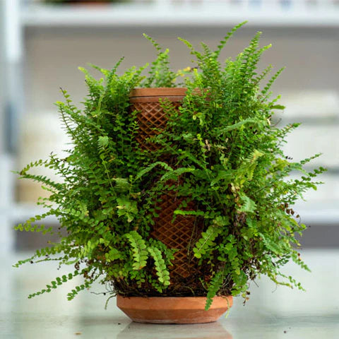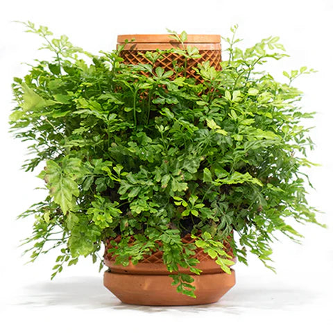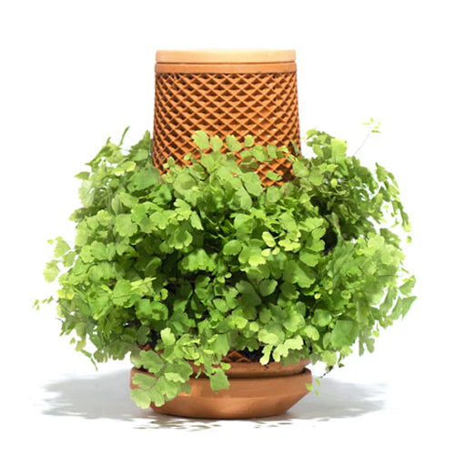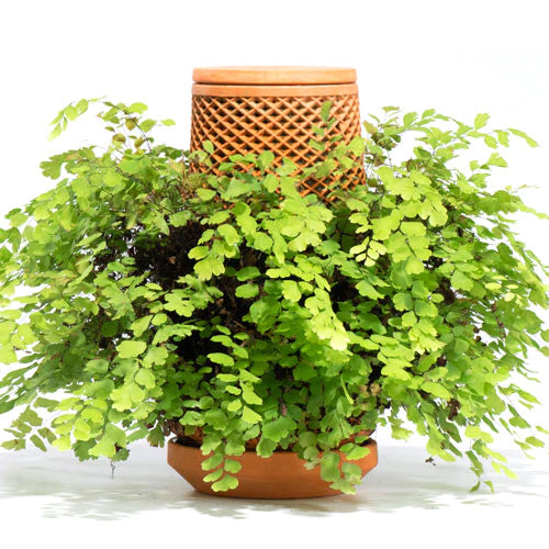 Adiantum is part of a very large family of ferns, they grow all over the world and each one is slightly different. The Adiantum is a very beautiful and beloved houseplants but tend to dry out and die suddenly. Usually the problem is dehydration. In nature it grows near a water source and thrives on its wet surroundings which keeps its roots always moist. We recommend to mount it at the lower part of the tevaplanter vessel and try to keep the water level high without ever letting the tevaplanter vessel dry out.