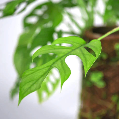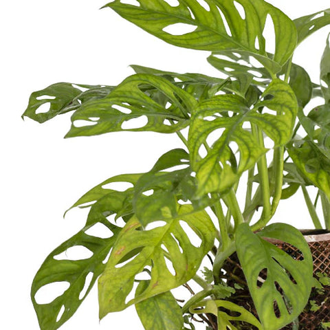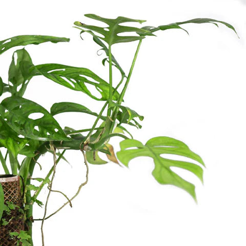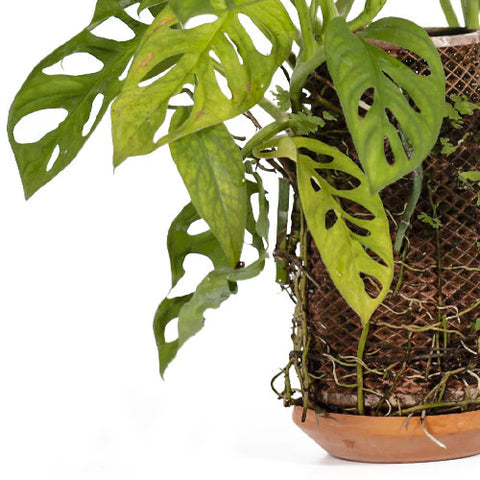 On this tevaplanter we mounted 3 different plants together: Monstera adansonii, Raphidophora tetraspema and a Epipremnum aureum Njoy. The Epipremnum aureum Njoy did not fair so well on the tevaplanter during our testing but the Monstera adansonii & Raphidophora tetraspema took very well to its new home. These plants becomes large with time, much larger in proportion to the tevaplanter which may not be to everyone's liking. These plants enjoy a lot of water and a good amount of bright indirect light. You can start your grow by replanting from a young plant or by stem cuttings.