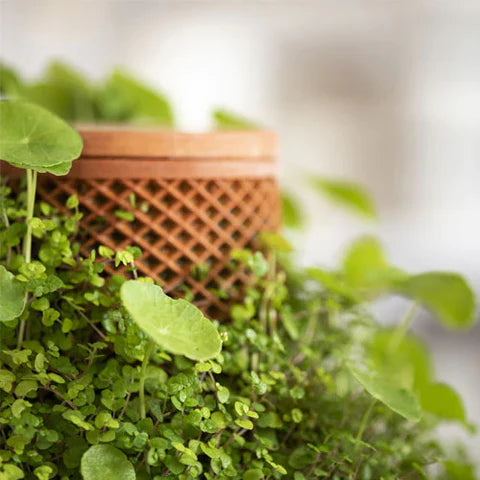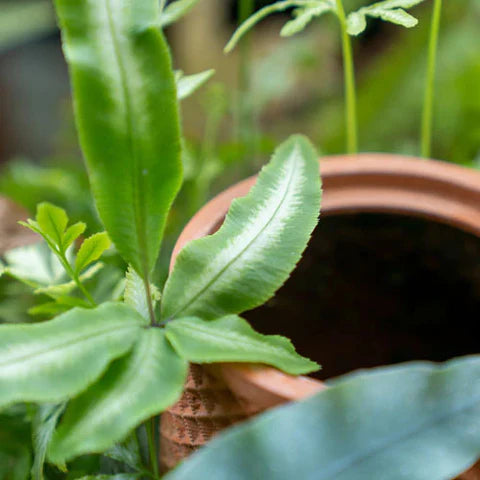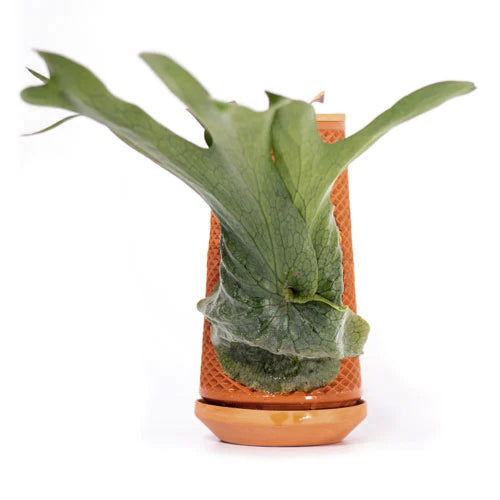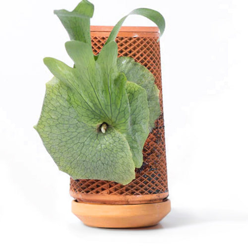 This fern is one of our favorite plants, originally grown in Australia this creeping plant grows both in soil and on tree trunks. The Kangaroo fern loves its roots consistently moist, which is why we recommend planting it at the bottom of the tevaplanter and never let the vessel dry. Over time the plant roots will take hold and the plant will start growing upwards covering the tevaplanter completely. The first period after planting is stressfull for the plant and will take longer than a month or two for the plant to get used to its new home and start growing.
