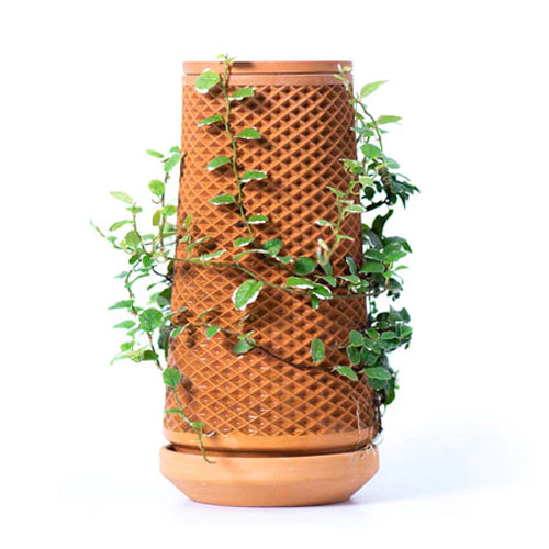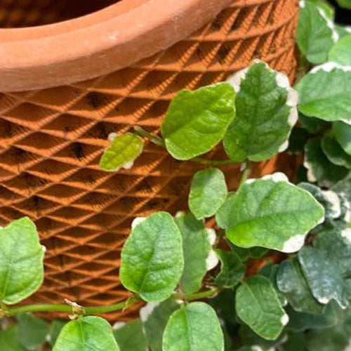 Ficus pumila is a climbing plant which grows roots along the stem. Pumila means dwarf and the name is in reference to the size of the leaves, in fact this plant could cover an entire wall over time and will need pruning on the tevaplanter after a period. The plant originates from East Asia and prefers to grow in a humid environment. From our experience, we recommend to let the water level in the vessel drop to allow roots to dry out. After the plant has taken root, it is even possible to leave the vessel partially full. Grow in a bright and airy place. A really nice and beautiful plant.