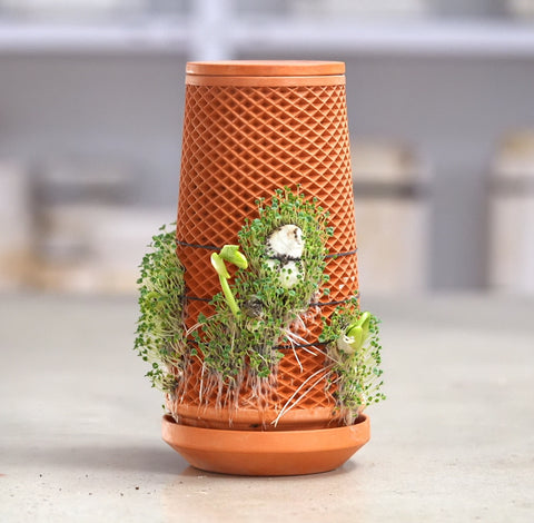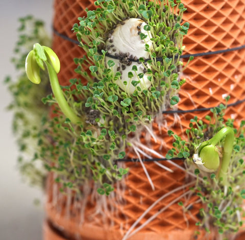Seed Germination: After applying the seed mixture to the tevaplanter, keep the water level high, spray the top section of seeds with water to encourage uniform sprouting and the seeds will begin to germinate with time.