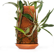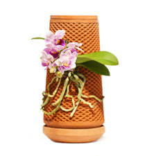 Fill the tevaplanter halfway to three quarters with filtered water to match the orchid's preference for moderate moisture. Allow the water in the tevaplanter to empty out from time to time, giving the roots periods to dry, which is crucial for preventing root rot. Initially, mist the roots twice daily until they show signs of health and activity, indicating successful acclimation. Position the tevaplanter in bright, indirect light and maintain humidity between 40-70%, possibly using a humidity tray or a clear dome during the early stages of replanting. Keep the orchid in a temperature range of 65-75°F, free from cold drafts, and apply diluted orchid fertilizer monthly.